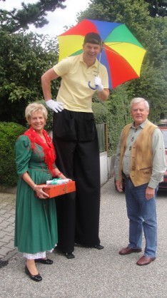 Ein recht herzliches Dankeschön möchte ich an alle meine fleißigen Helfer richten. Die Damen die immer wieder Geschirr spülten, an Peter der immer für schmackhafte Steaks und Würstel sorgte, an Markus der den Durst der Gäste stillte, an die beiden Sabinen, die sich um Fotos und um alles was so anfiel kümmerten, an meine Kuchenbäckerinnen, an Toni der für die richtige Musik sorgte und meine Gäste auf Stelzen begrüßte, an Claudia die alle anfallenden Laufarbeiten erledigte.